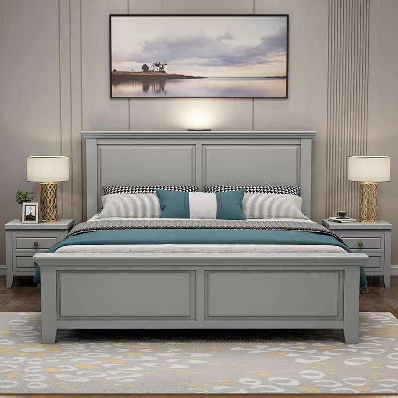 深圳北欧实木床1.5米现代简约轻奢灰白色双人床橡木板床单层床架