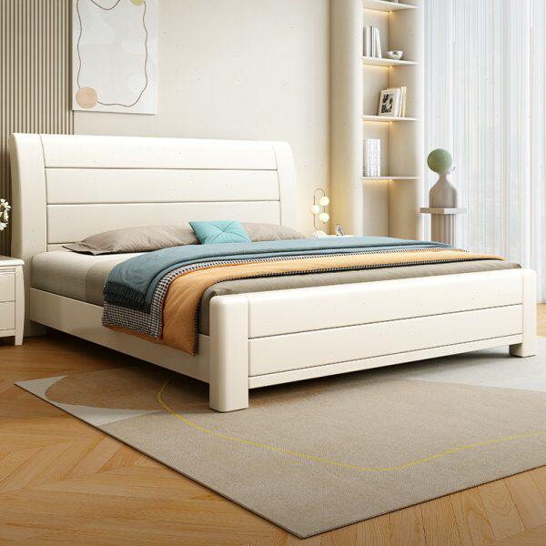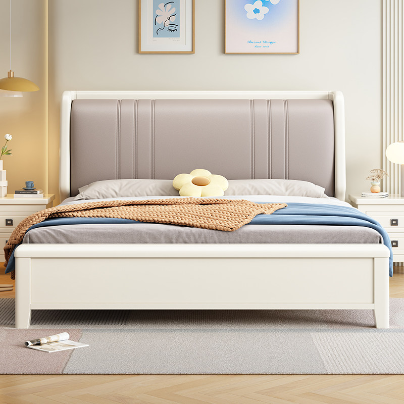 舒曼达实木床现代简约奶油风白色双人床主卧软包皮靠小户型1.8米