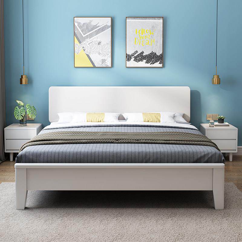 床 实木床1.8米现代简约白色双人床1.5m出租房经济型简易单人床