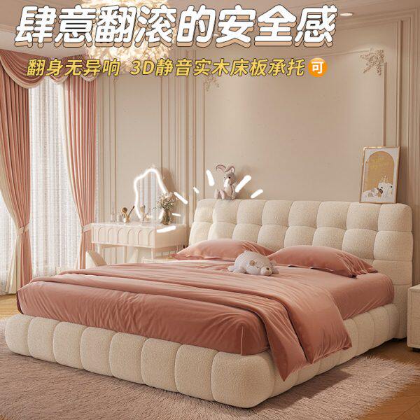 棉花糖泡芙床简约羊羔绒大床2023新款女生主卧室奶油风白色双人床