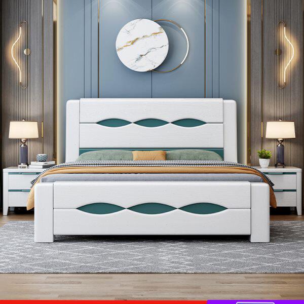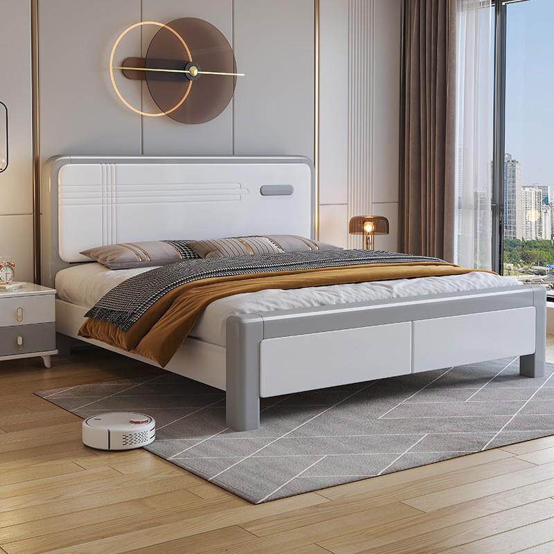 现代简约1.8m实木床家用主卧白色双人床1.5m出租房储物结婚大床