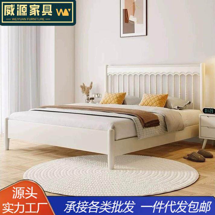 全实木床现代简约工厂直销白色双人床1.8米主卧婚床小户型单人床