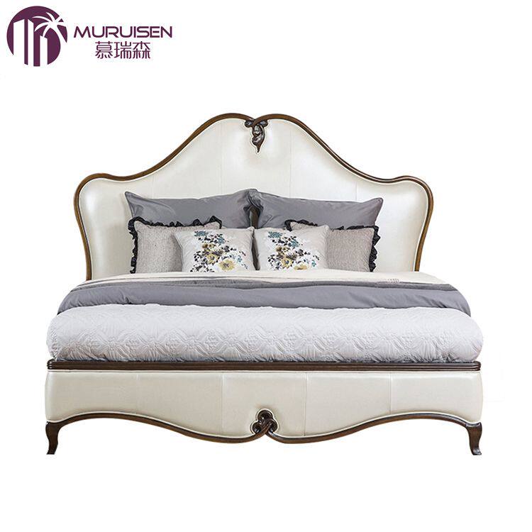 美式现代实木简约白色双人床 欧式新古典卧室牛皮床1.8米双人床