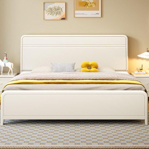 北欧实木床家用卧室简约1.8主卧婚床奶油风1.5单人床白色双人床