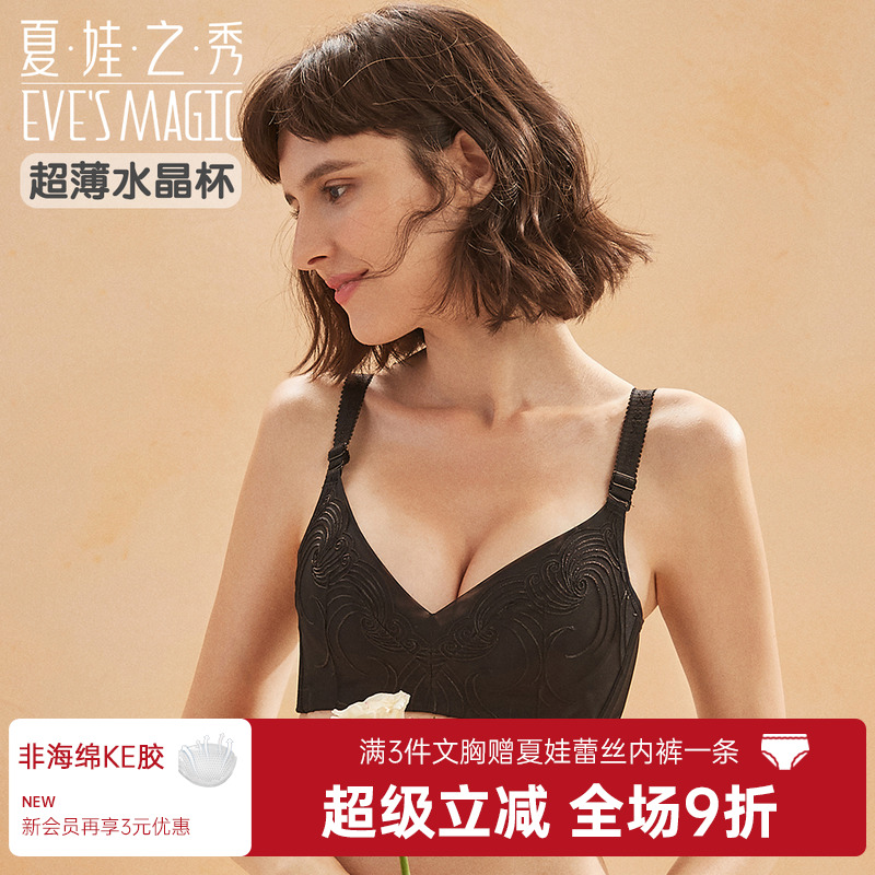 夏娃之秀全罩杯水晶杯超薄透明文胸大胸显小无钢圈大码聚拢内衣女