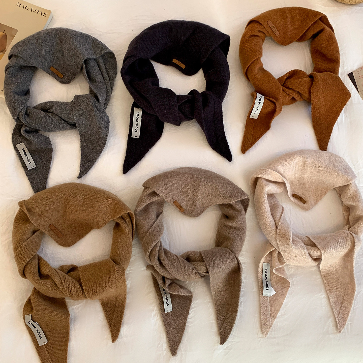 100%纯羊毛小围巾女秋冬季针织小领巾时髦三角巾搭配披肩护颈围脖