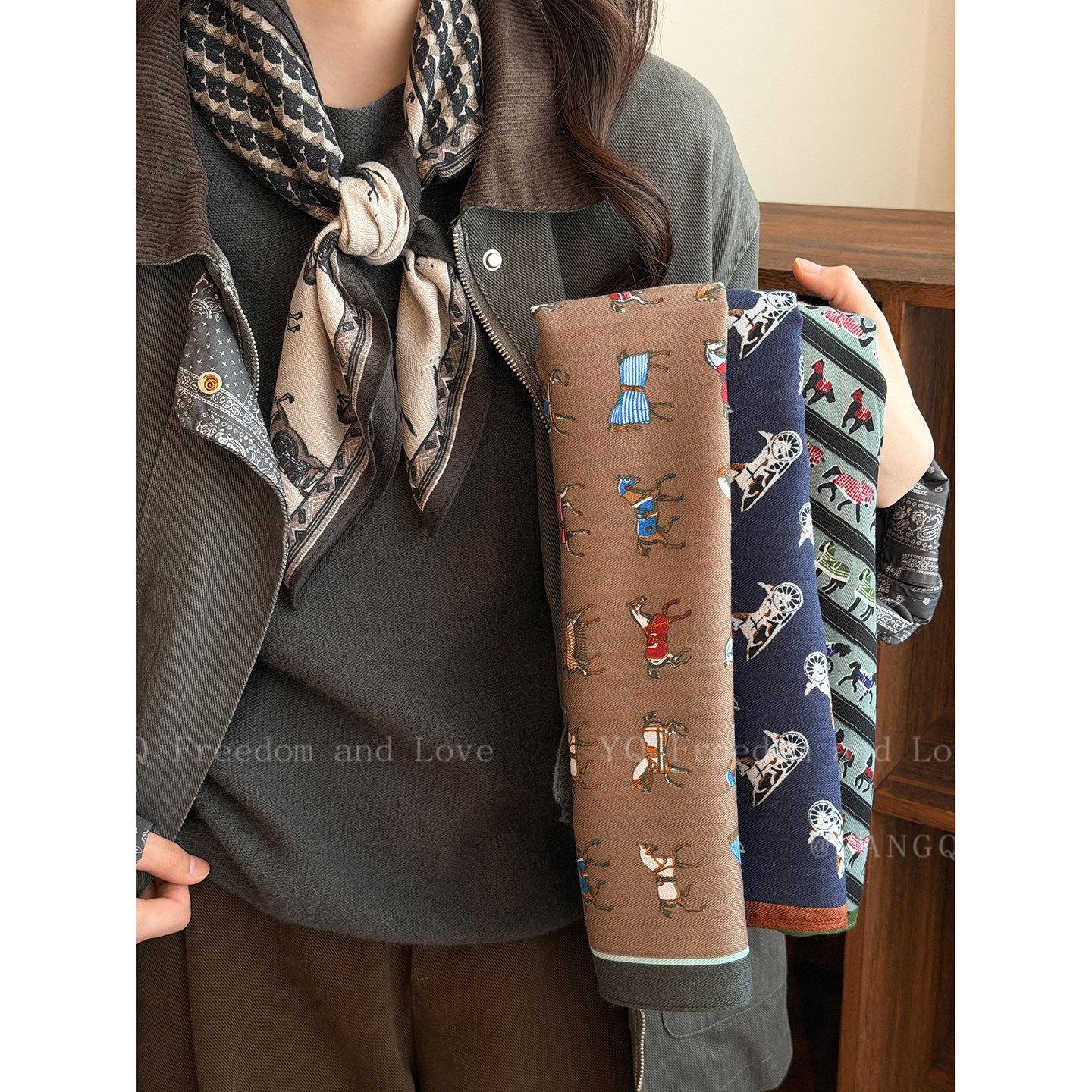 丝巾小方巾女春秋复古丝绒绿色骏马领巾搭衬衫ins头巾发带围巾