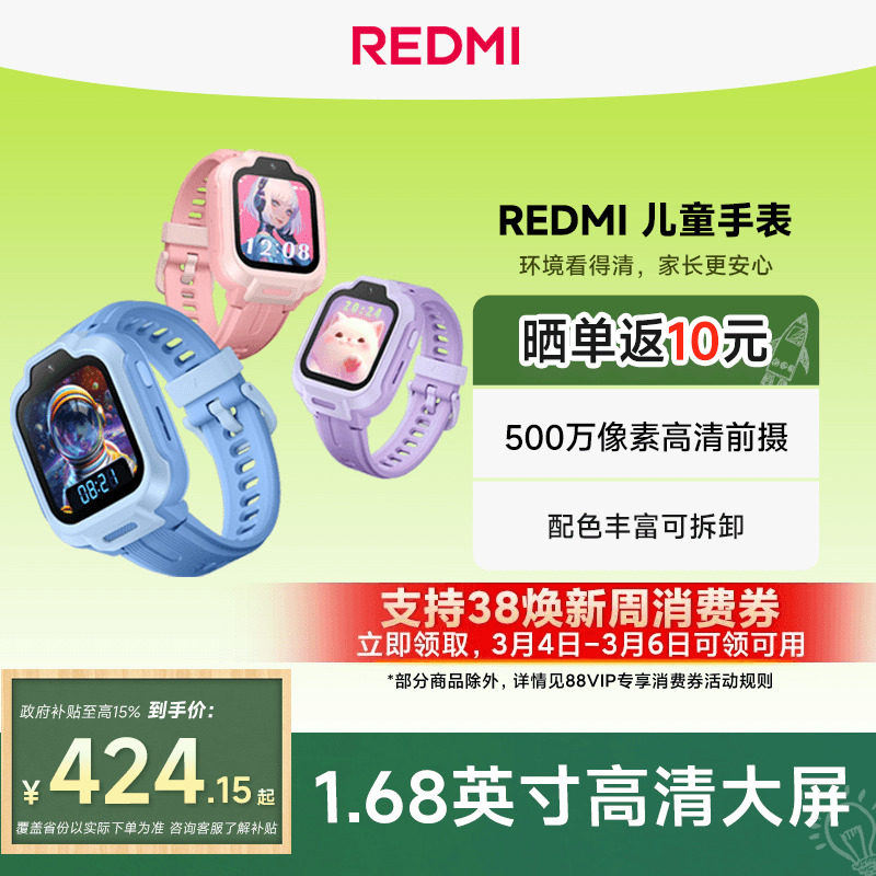 【国家补贴15%】小米REDMI儿童电话手表高清摄像 安全定位 防水表带可拆卸小学生少年男女孩官方正品礼物