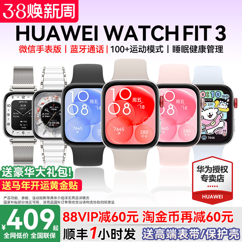 【政府补贴15%】华为手表WATCH FIT3智能手表健康运动防水游泳专用fit4手环2025男女款官方旗舰ft3 fiti3