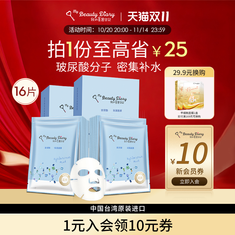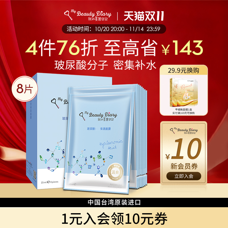 我的美丽日记面膜官方正品玻尿酸补水提亮保湿台湾省日志女生男士