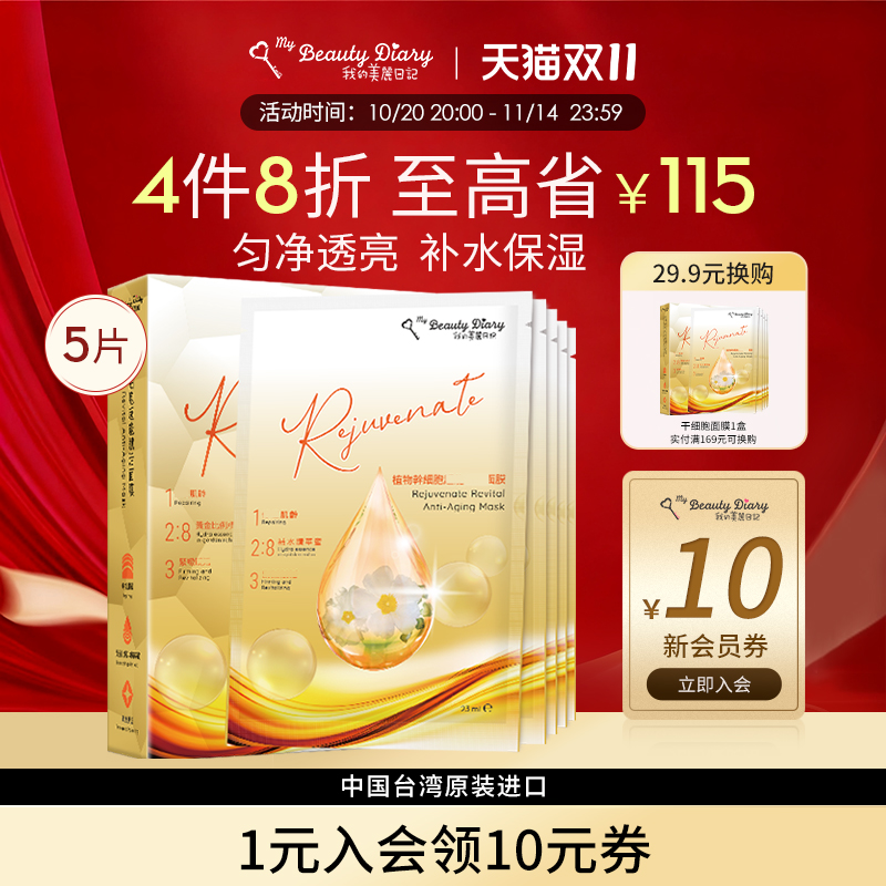 我的美丽日记面膜海外旗舰店正品官方台湾省植物补水提拉保湿5片
