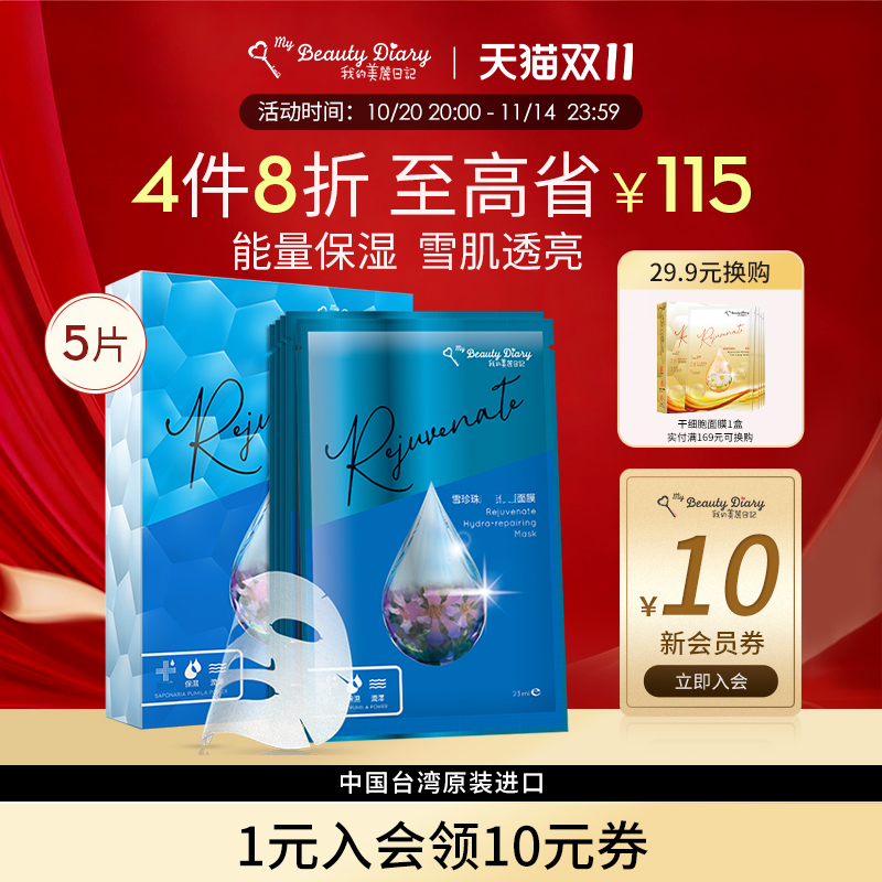 台湾省我的美丽日记面膜雪珍珠5片补水清爽保湿滋润官方正品女士