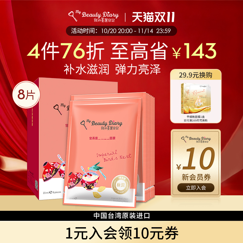 我的美丽日记面膜贴台湾省官方正品旗舰店官燕窝补水8片男生女士