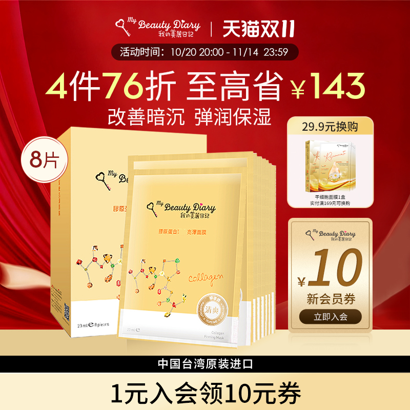 我的美丽日记面膜胶原蛋白8片补水V脸提亮保湿官方正品台湾省正品