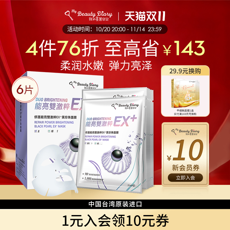我的美丽日记面膜官方正品黑珍珠16贴片补水提亮肤色熬夜台湾省女
