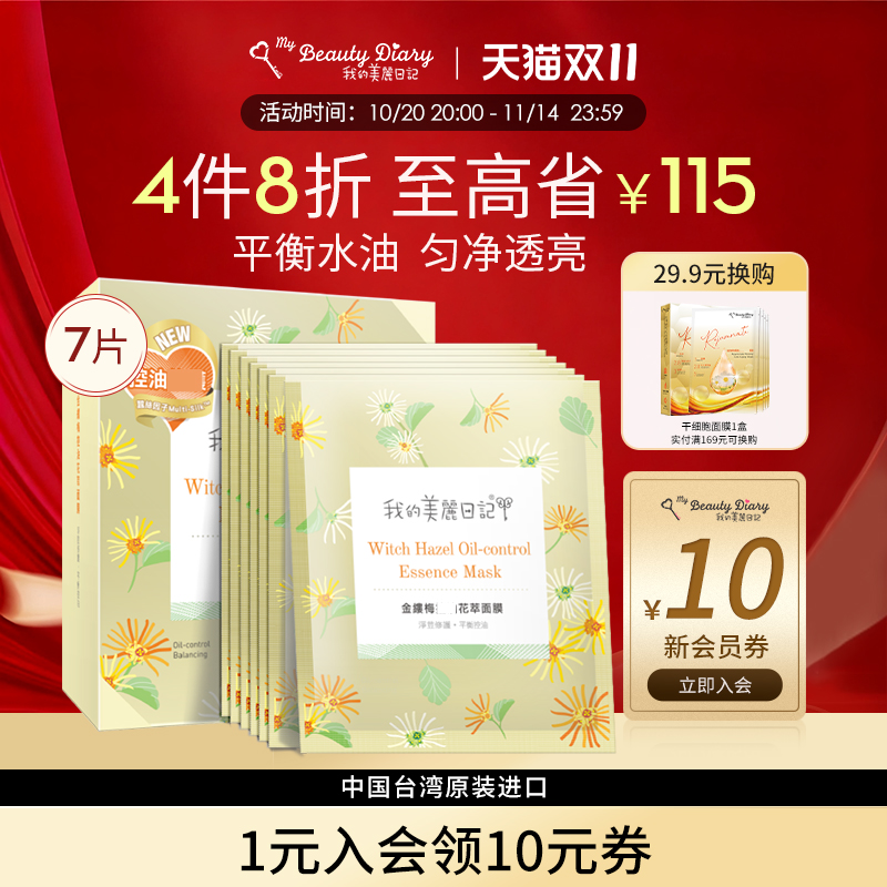 我的美丽日记旗舰店官网金缕梅花萃面膜7片保湿细致毛孔官方正品