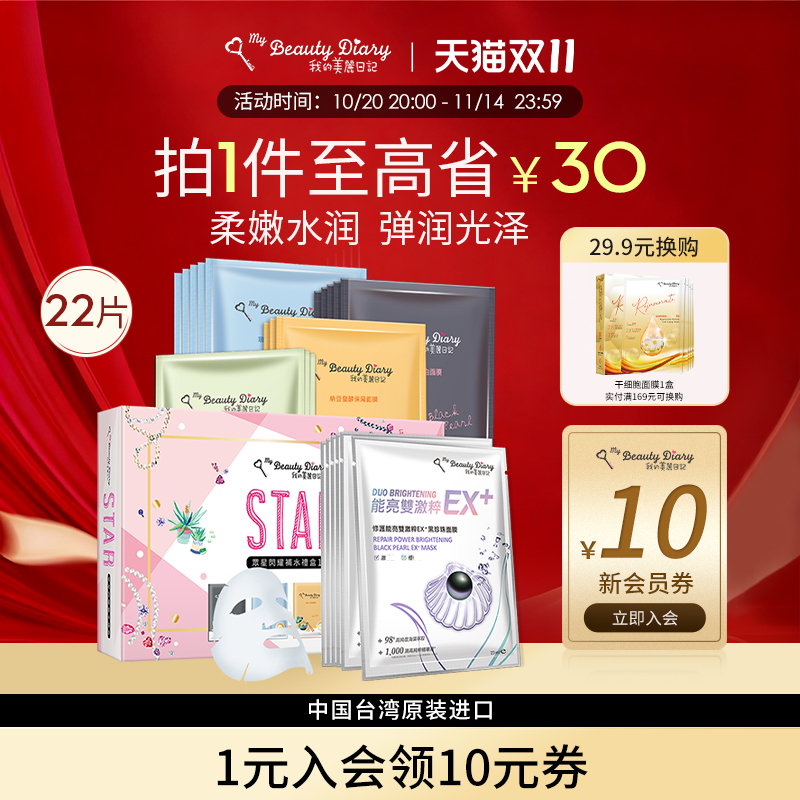 我的美丽日记面膜众星闪耀22片礼盒补水中国台湾官方正品补水套装