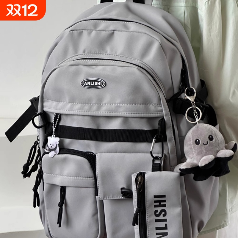 书包女高中大学生日系ins潮牌工装大容量双肩包女休闲旅行背包男