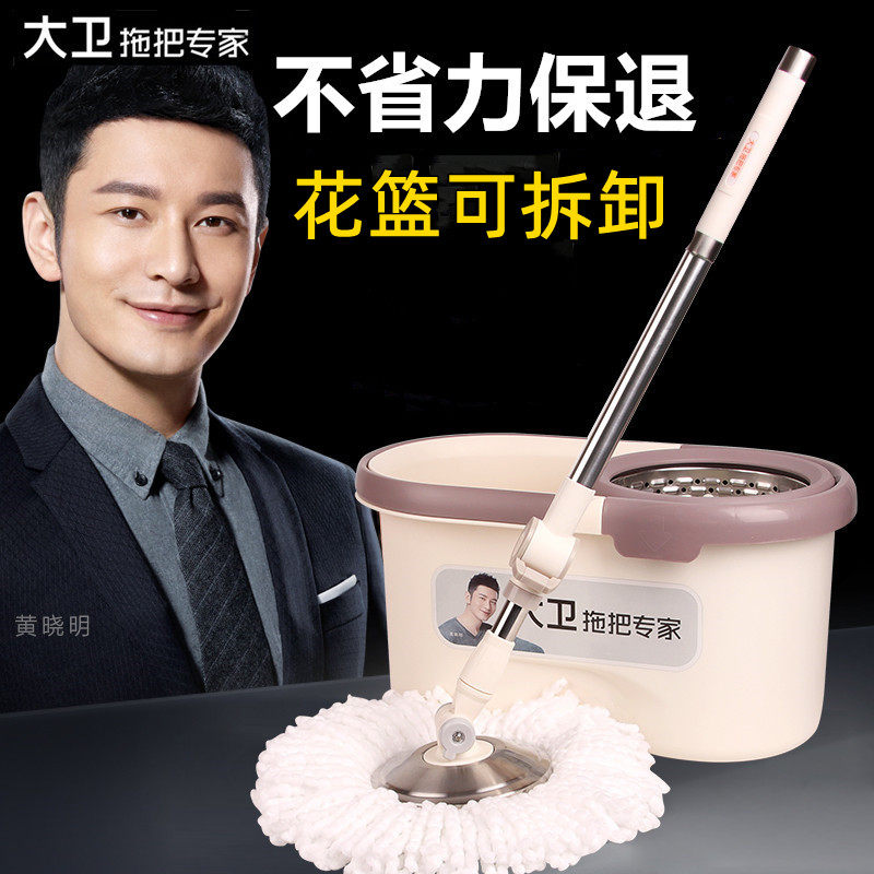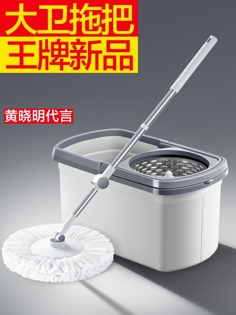 正品大卫拖把双驱动家用免手洗单桶拖布旋转自动手压甩干可拆卸桶