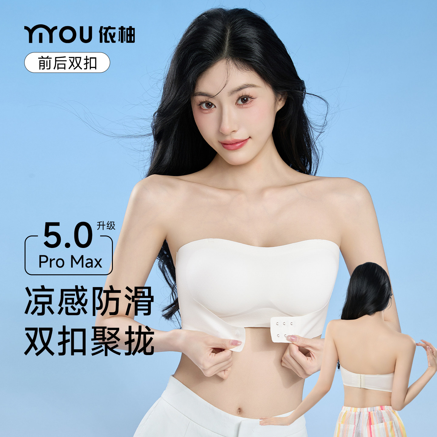 依柚双扣无肩带5.0小胸聚拢前扣粉底液内衣无痕隐形防滑抹胸文胸