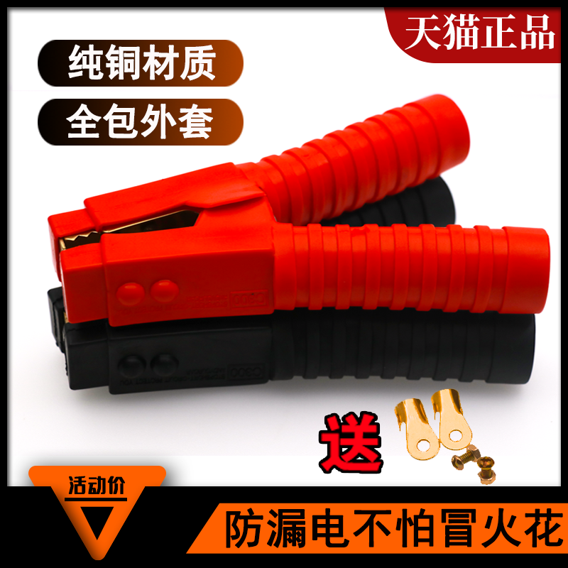 真诚加厚电瓶夹子纯铜汽车搭火线强力鳄鱼夹蓄电池电线连接线卡子