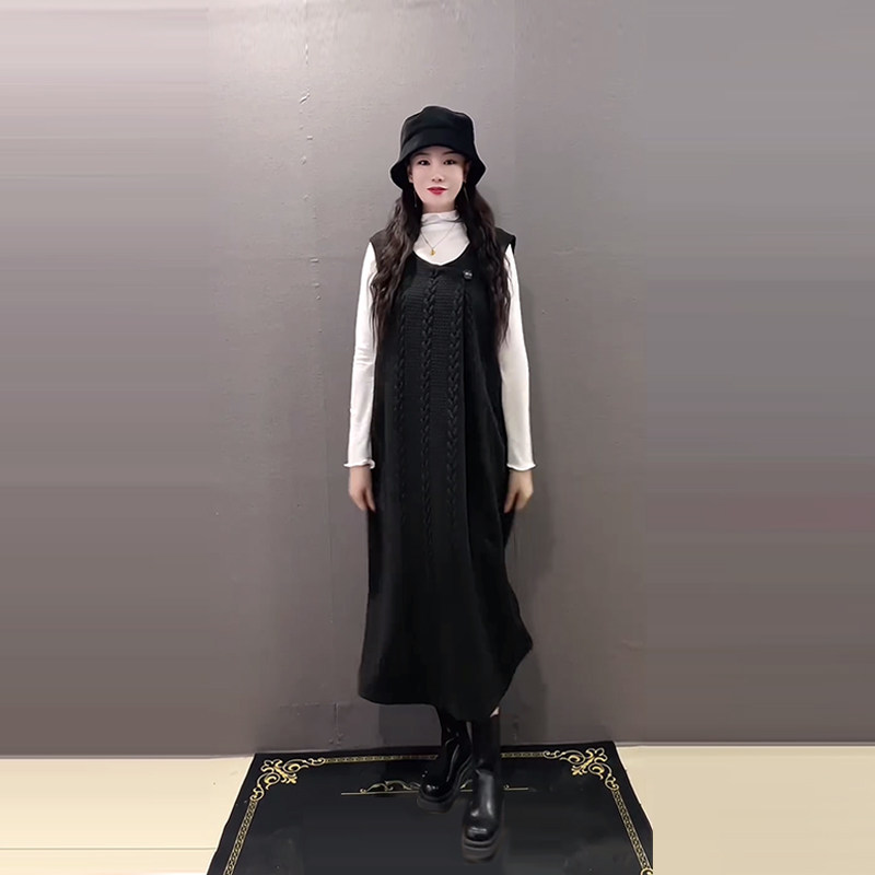加大码女装圆领长款黑色马甲裙胖妹妹纯色简约百搭高领长袖打底衫
