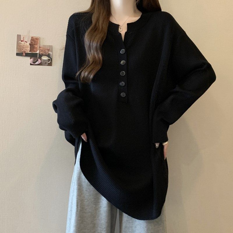 速发大码胖妹妹黑色针宽打底衫2042新款春秋中长款内搭织松v领毛