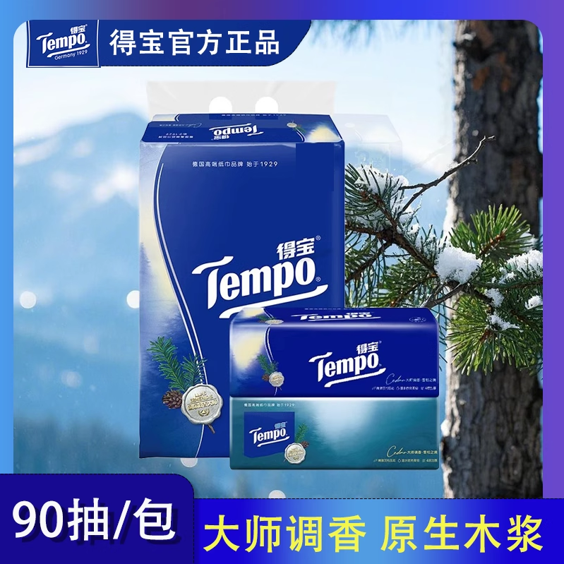 Tempo得宝抽纸雪松之境印花纸巾家用办公宿舍车载高定调香4层90抽