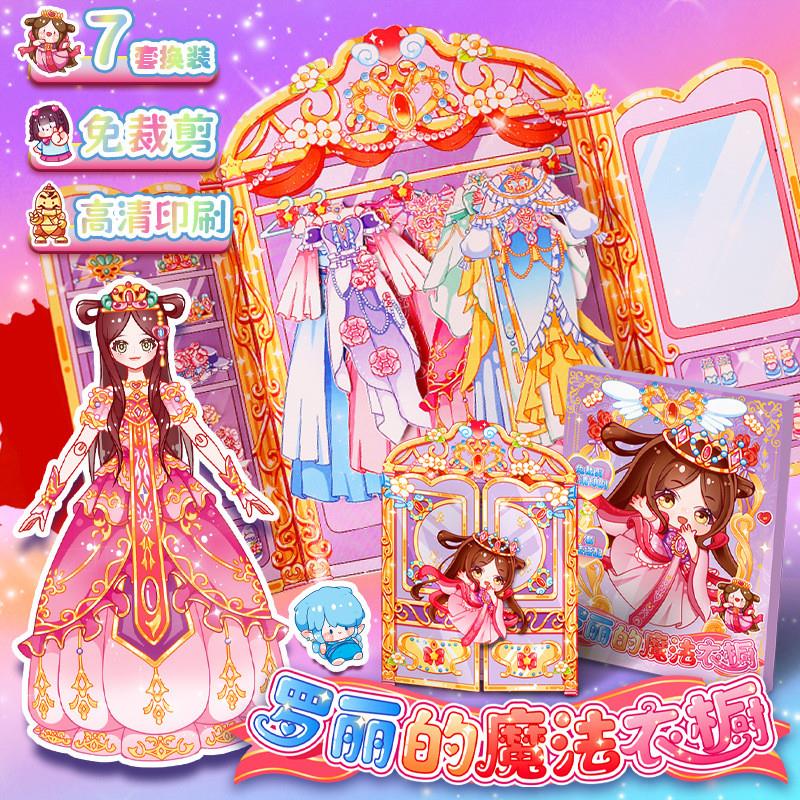 儿童美丽公主换装贴纸女孩可重复使用元气少女换装贴纸书芭比娃娃换装套装玩偶拼装可动纸偶贴纸本贴贴乐玩具