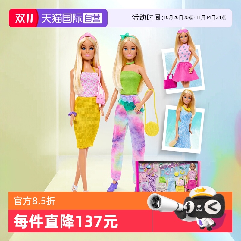 正版芭比Barbie之时尚达人娃娃套装社交互动女孩公主换装儿童玩具