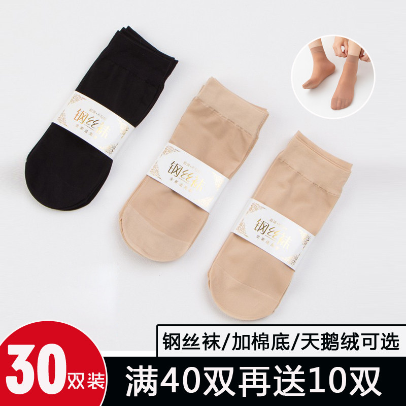 30双袜子女丝袜钢丝袜短袜薄款夏季防勾丝短筒肉色黑色水晶丝防滑