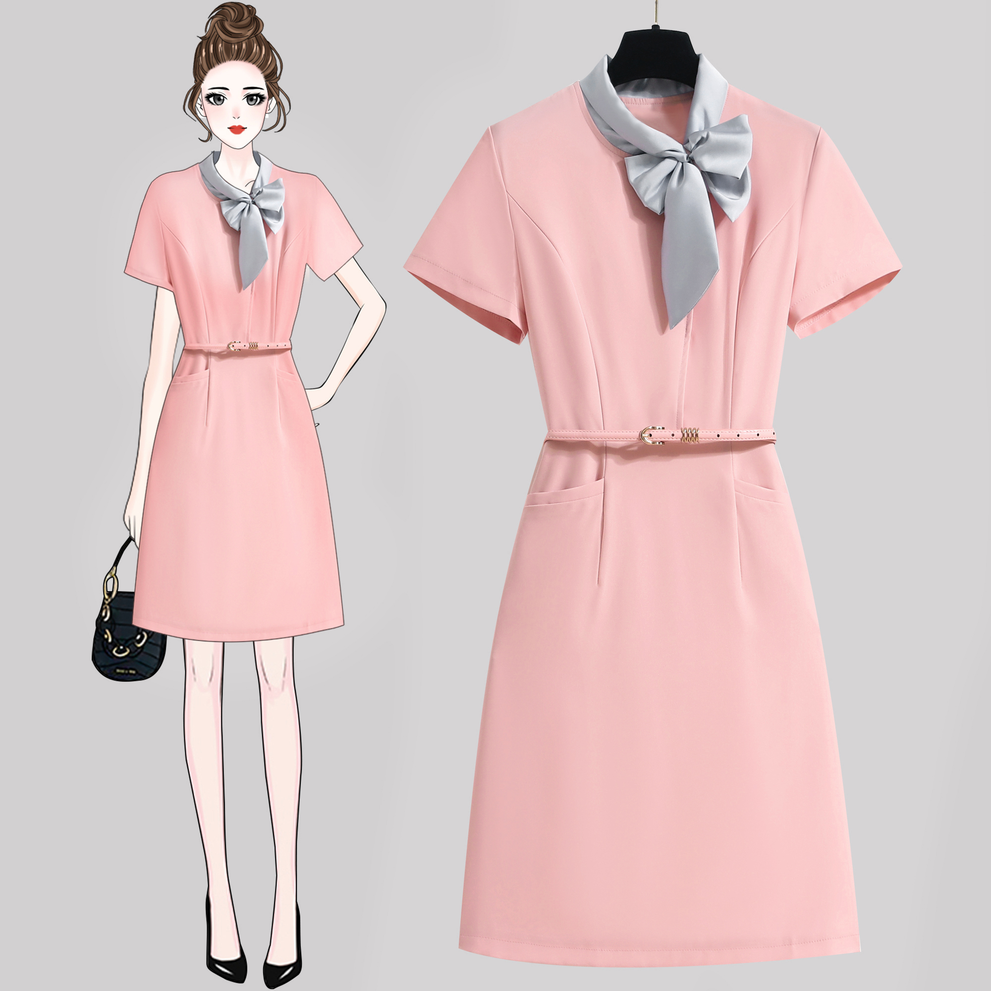 新款职业连衣裙女夏季前台接待工作装美容师工作服高端会所过膝裙