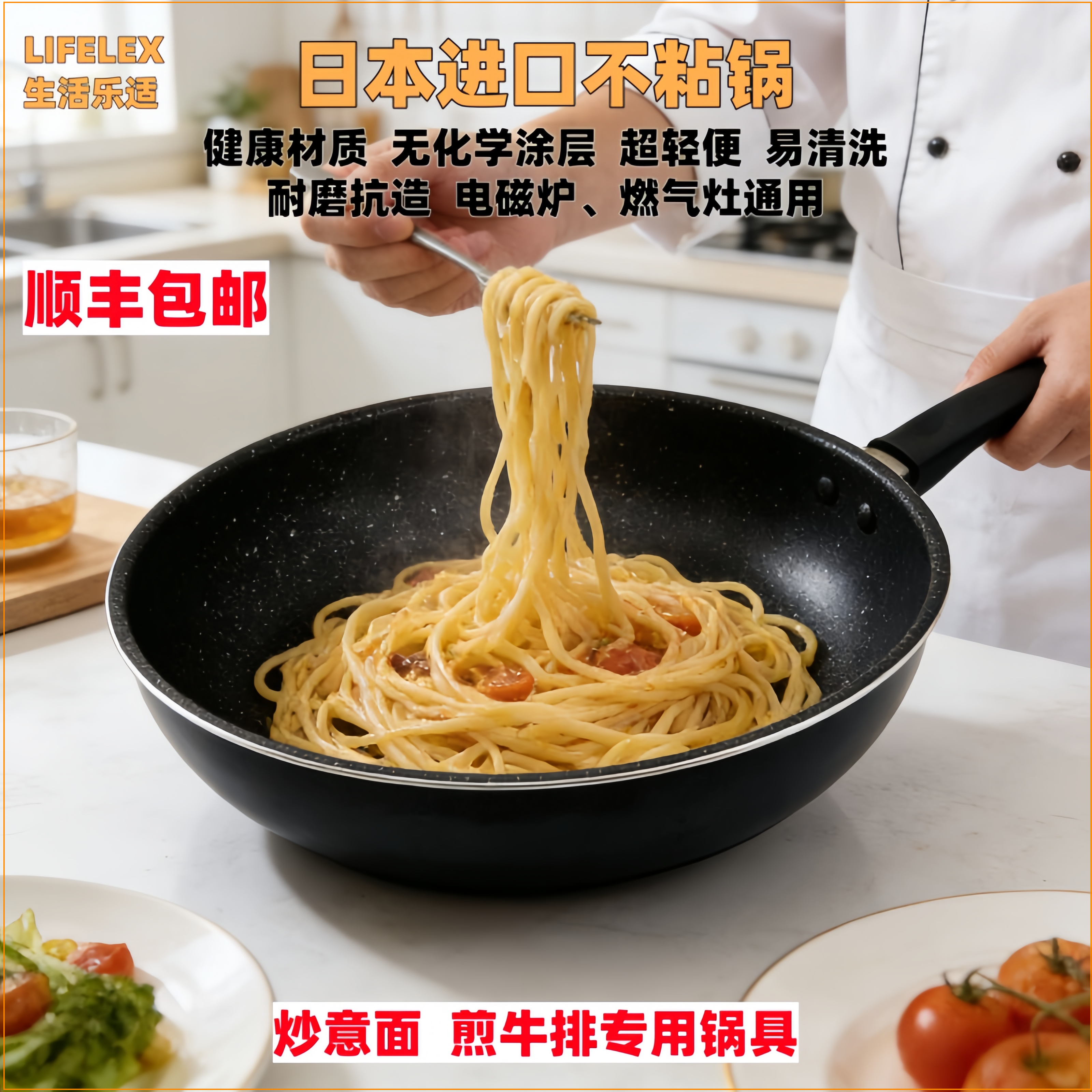 日本进口不粘炒锅轻量易清洁无烟炒锅煎牛排炒意面专用健康烹饪锅
