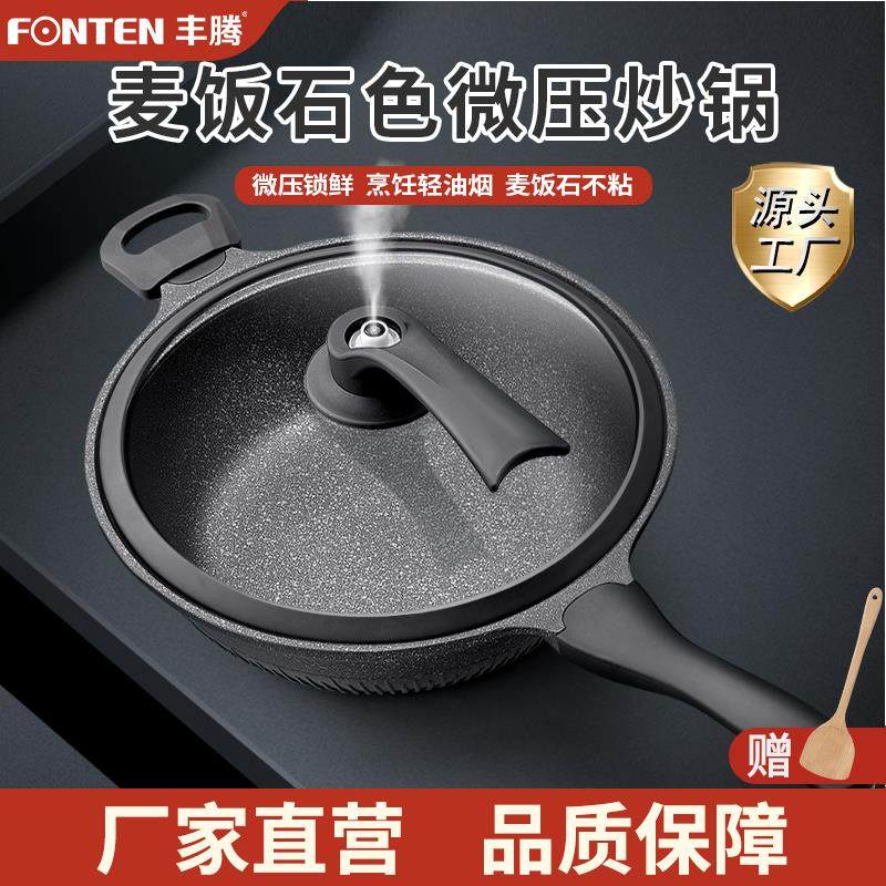 炒菜锅不粘锅平底锅麦饭石多功能无烟炒锅家用煎锅电磁炉煤气通用