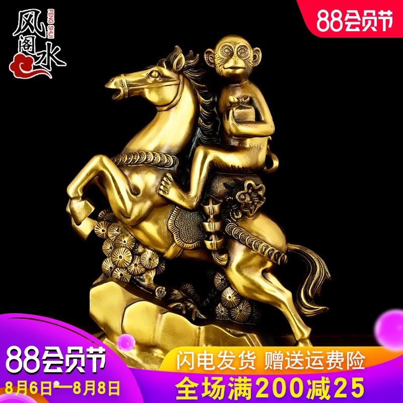 优选风水阁铜马摆件纯铜客厅马上封侯马上有钱马上赢招财生肖猴工