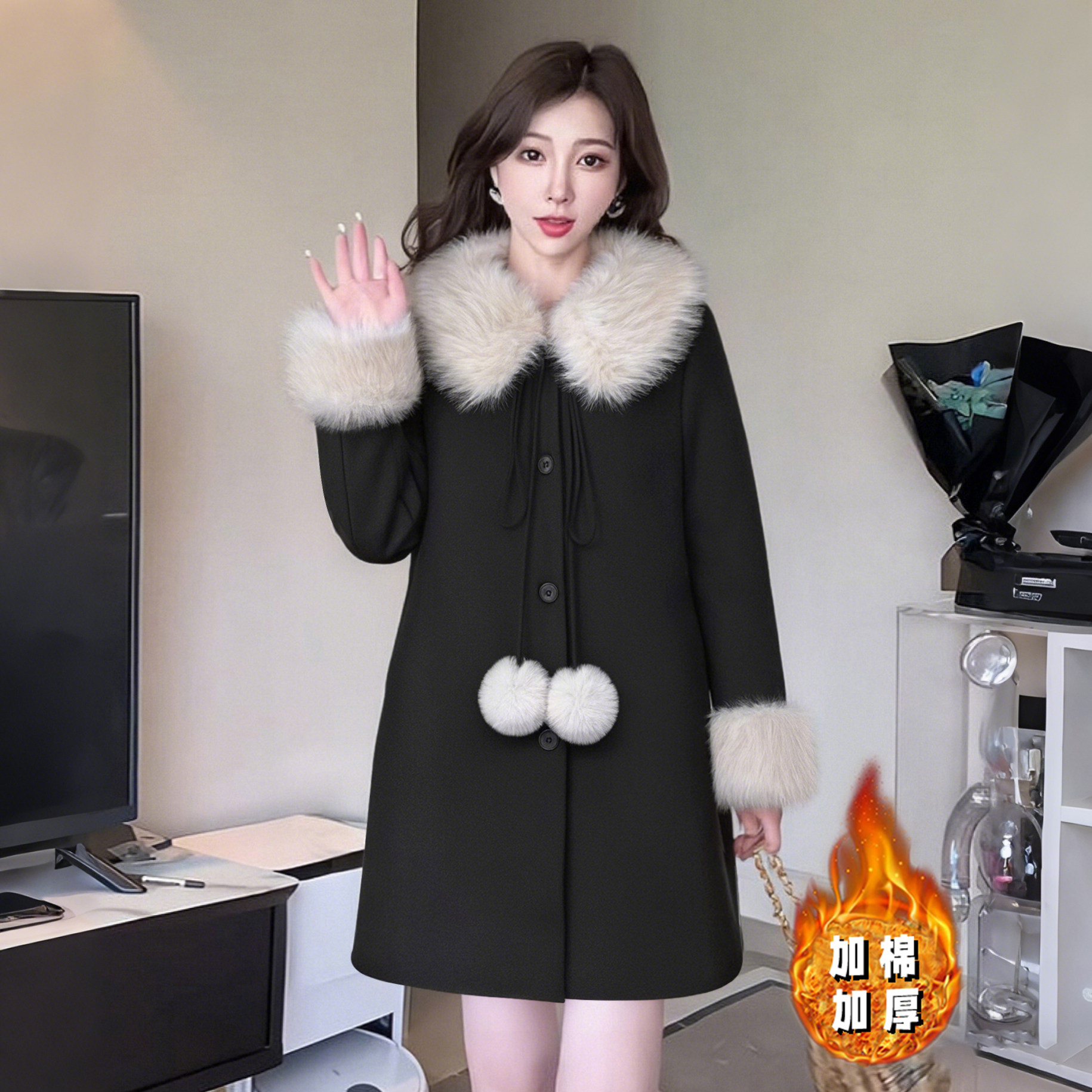 加棉加厚毛呢外套女中长款2025秋冬新款韩版宽松显瘦洋气呢子大衣