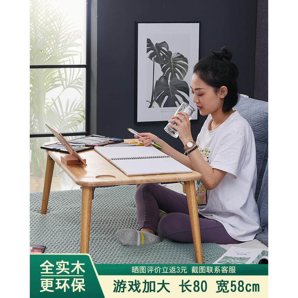 纯实木床上折叠桌懒人桌学习小桌子书桌榻榻米桌飘窗书桌炕桌大号