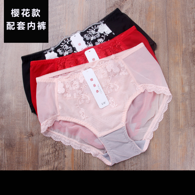 J金W薇樱花恋文胸无钢圈聚拢调整型内衣收副乳蕾丝刺绣抗菌胸罩