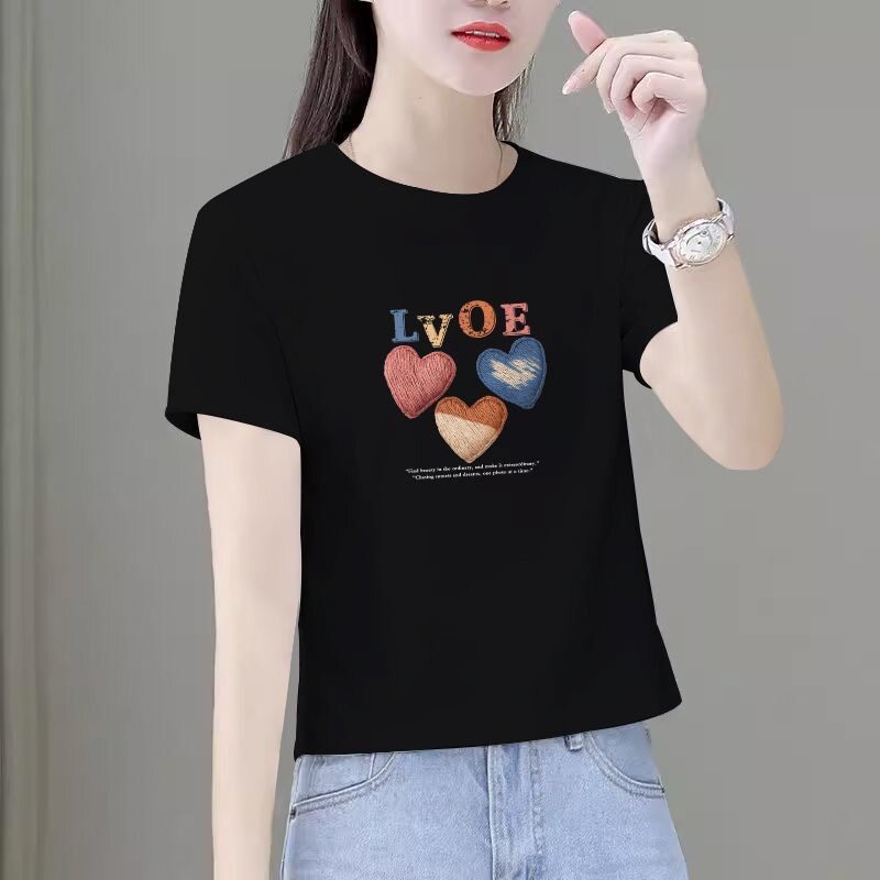 - 纯棉短袖t恤女 宽松学生