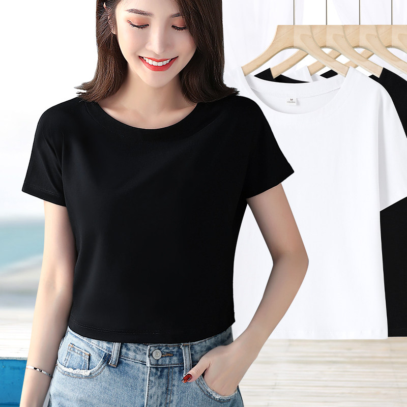 露脐短袖女夏短款t恤漏肚脐紧身纯棉高腰上衣半袖打底衫短装体恤