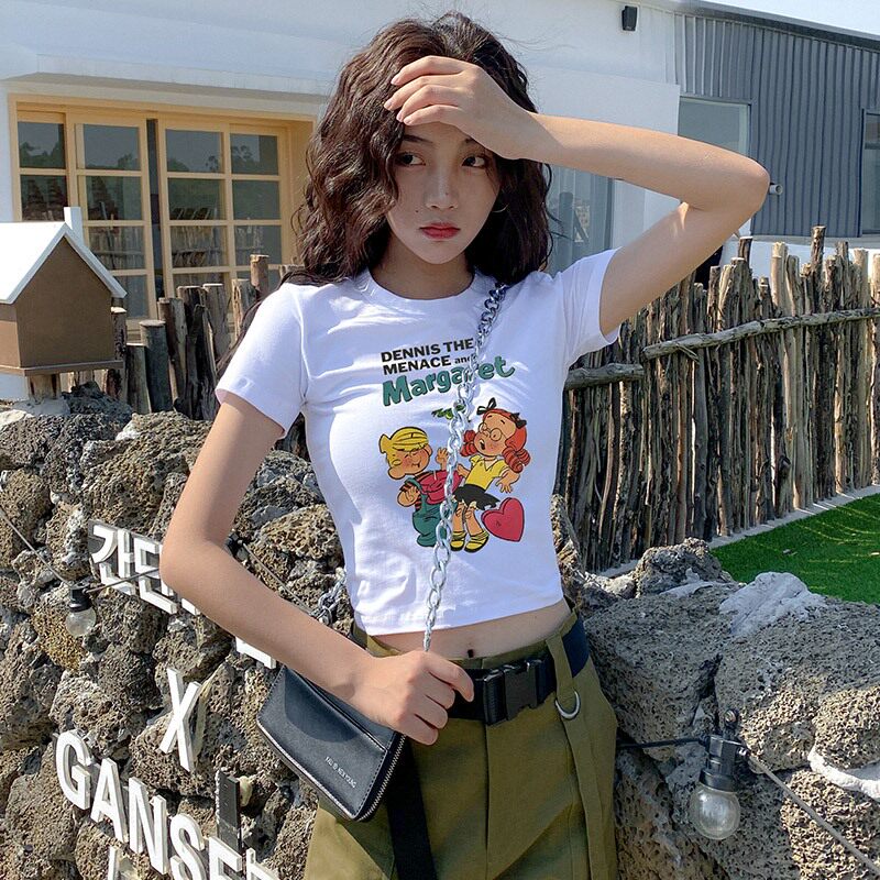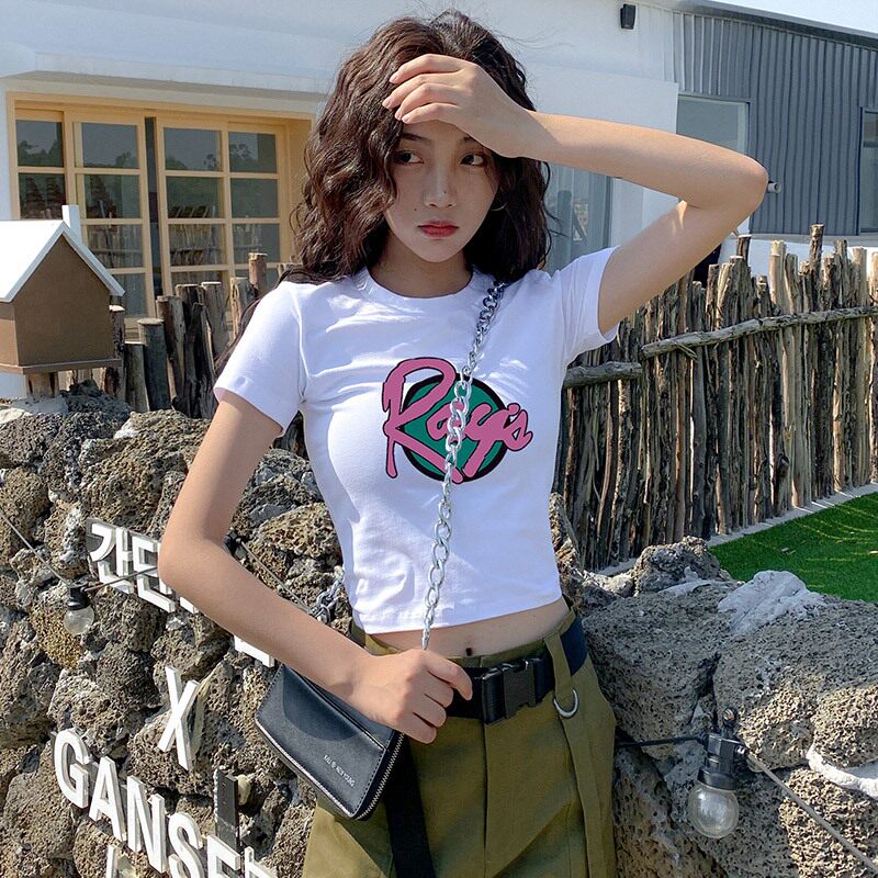 潮牌明星同款露脐短款t恤女装短袖印花高腰体恤泫雅风显瘦上衣服