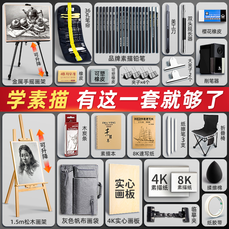 素描工具套装画架画板美术生专用4k全套速写画包画袋画画用品支架式写生炭笔儿童铅笔绘画初学者专业折叠架子