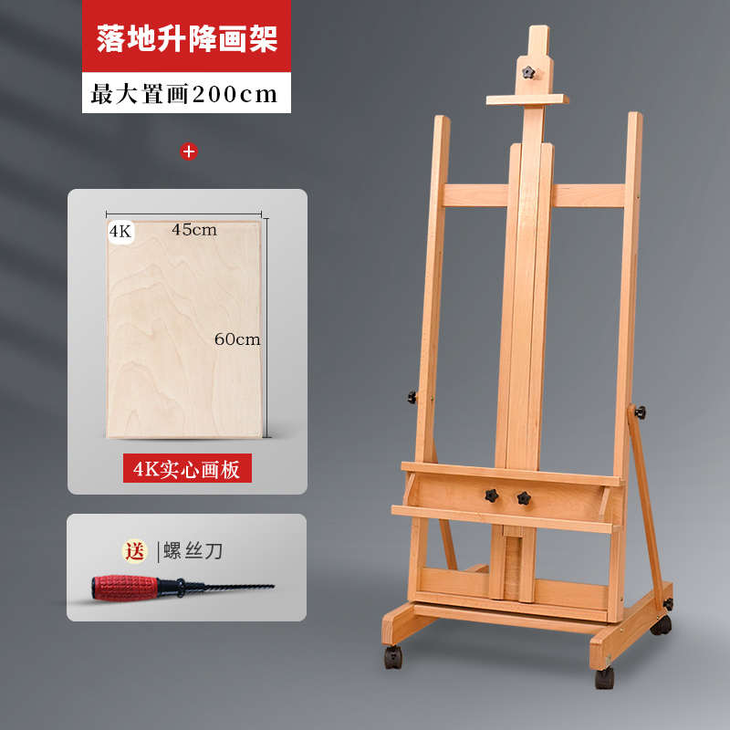 榉木制单画架手摇升降落地式画架子专业美术国画大师专业画架批发