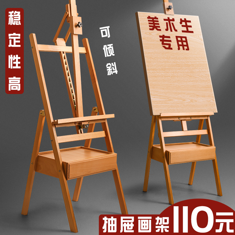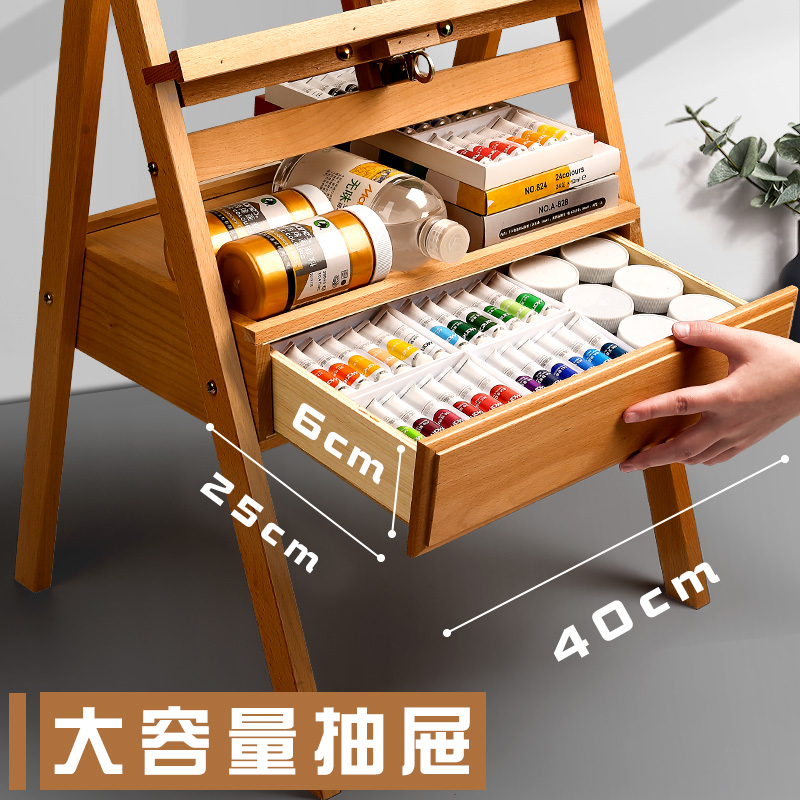 【折扣】抽屉式专业画架画板套装木质木制美术生专用支架式榉木折