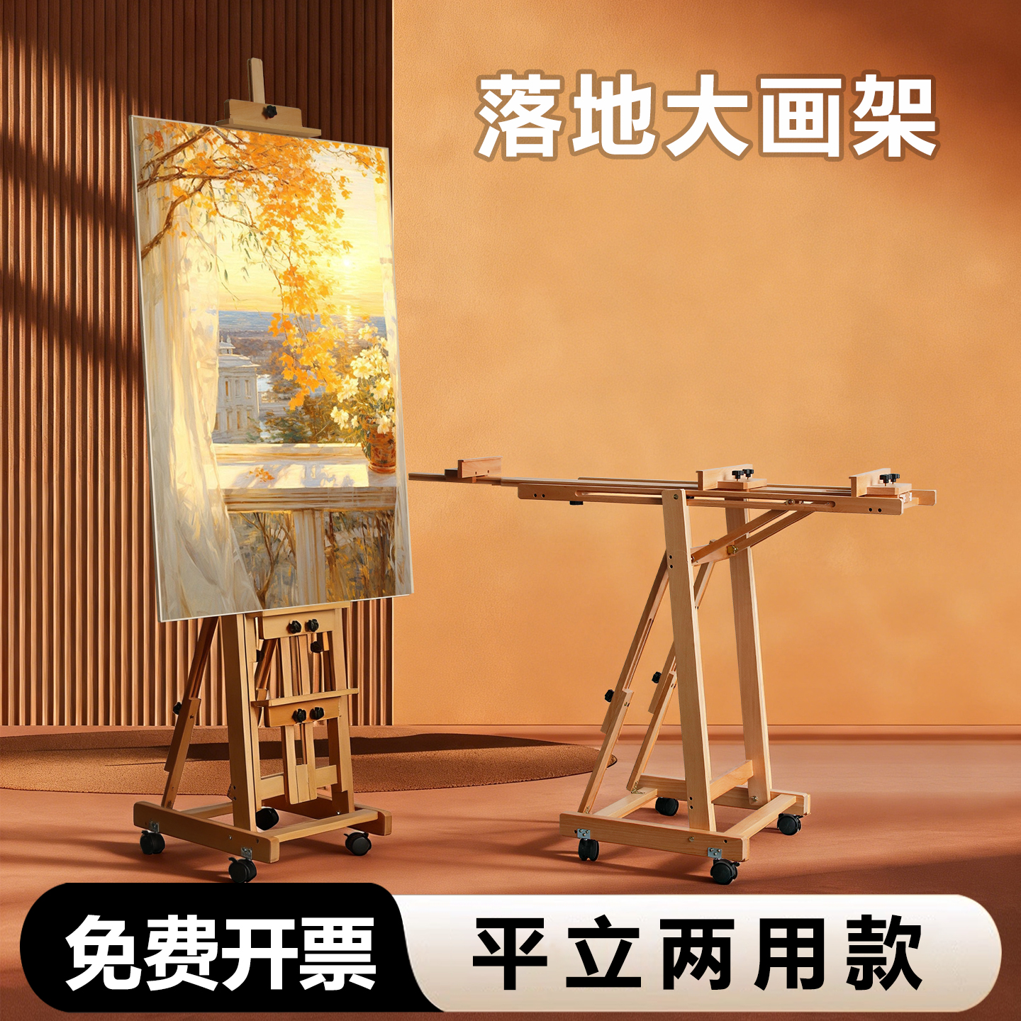 落地大画架平立两用美术生专用支架式可折叠木质专业级油画展示架