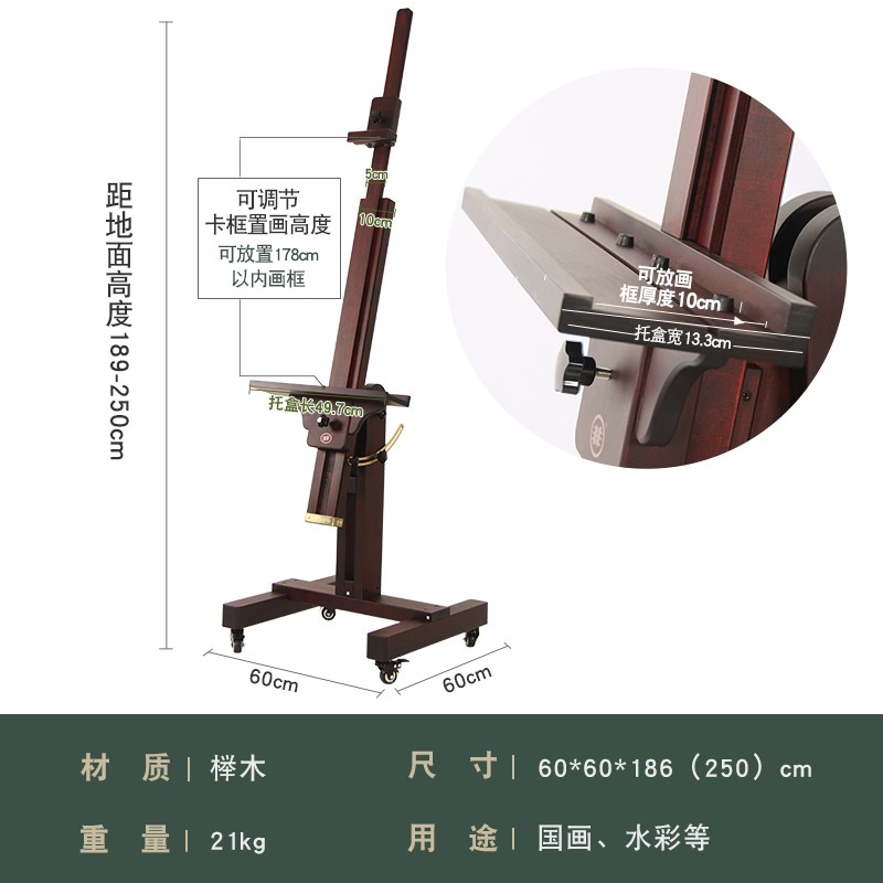 专业画架榉木平立两用国画油画大画架落地实木升降伸缩多功能画架