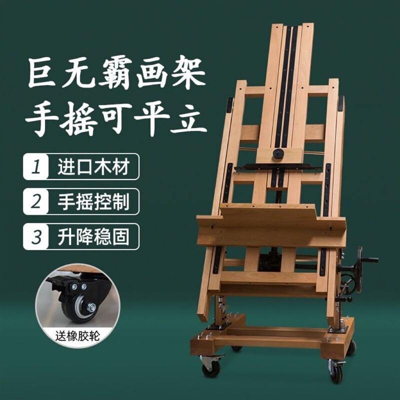 丰丰画架支架式单手摇平立两用榉木大画架 油画丙烯水彩专业画架