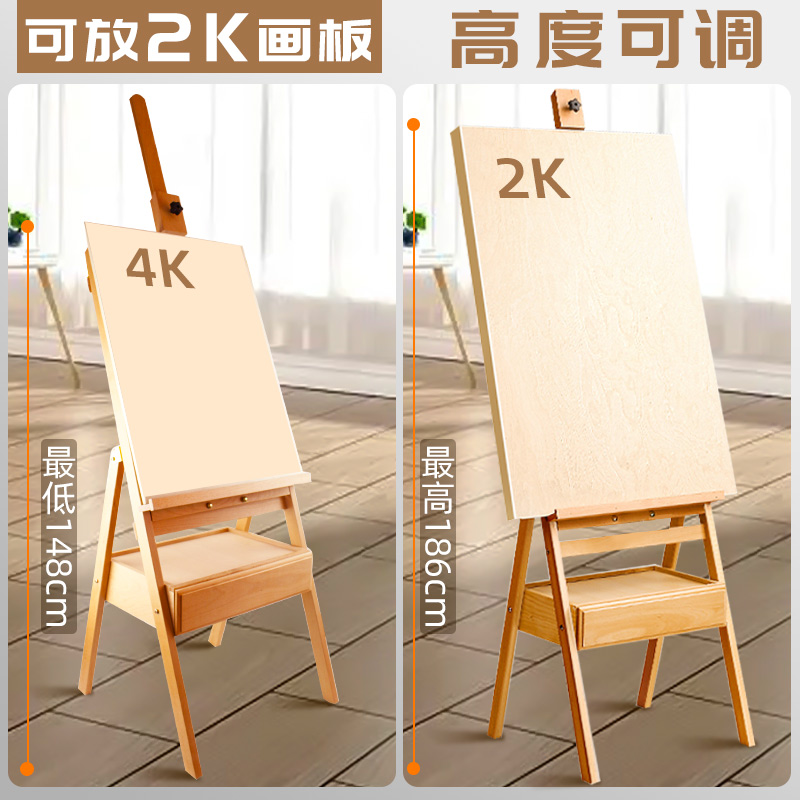 榉木原木折叠抽屉画架美术生专用油画架儿童素描工具套装全套展示架平立画画写生木质实木绘画初学者丙烯专业