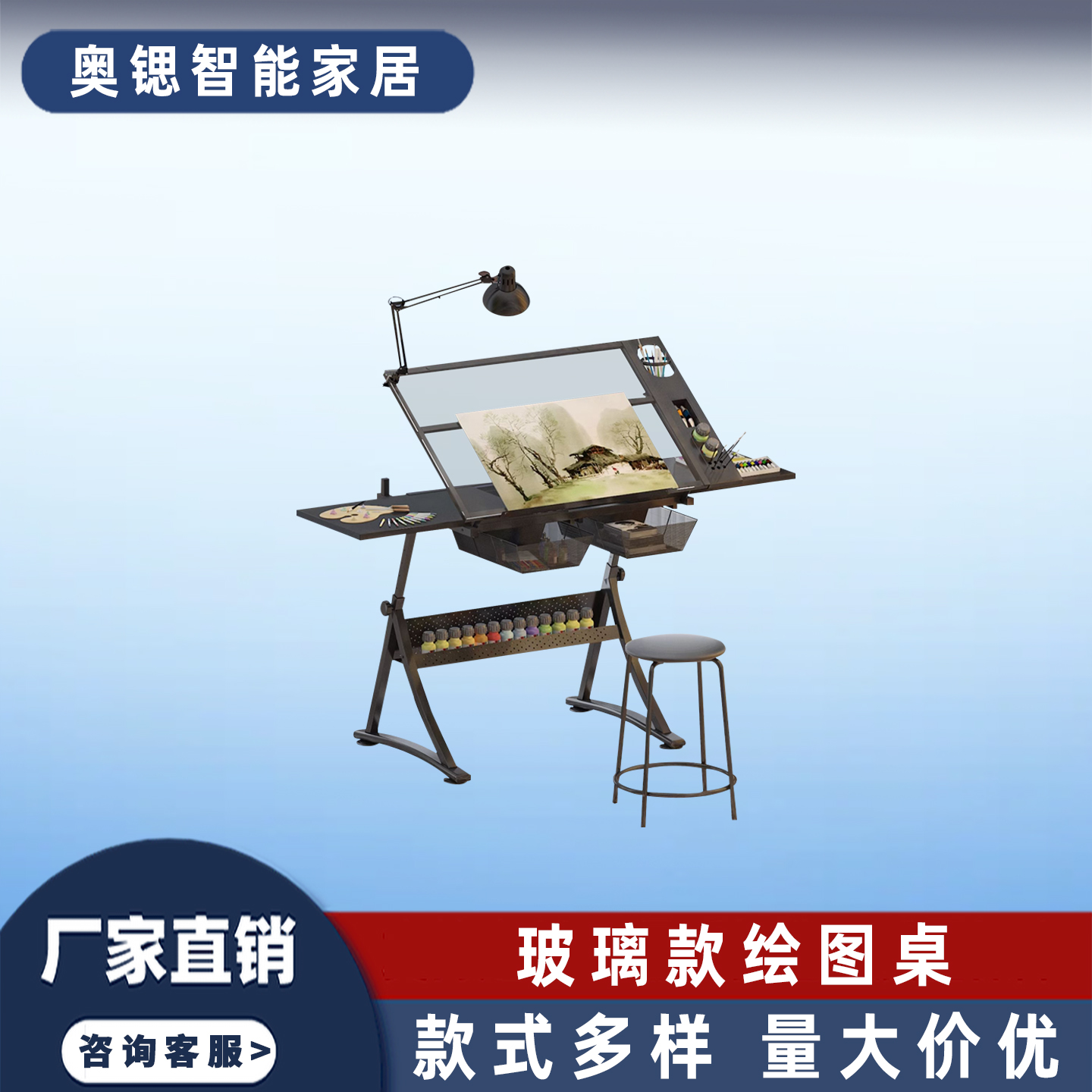 玻璃款可升降绘图桌学校画室机构美术生专业画架可折叠设计工作台