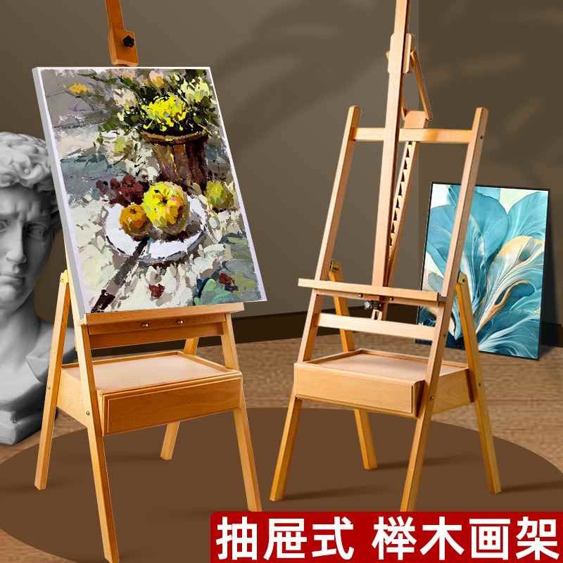 抽屉式专业画架画板装木质木制美术生专用支架式榉木折叠儿童家用